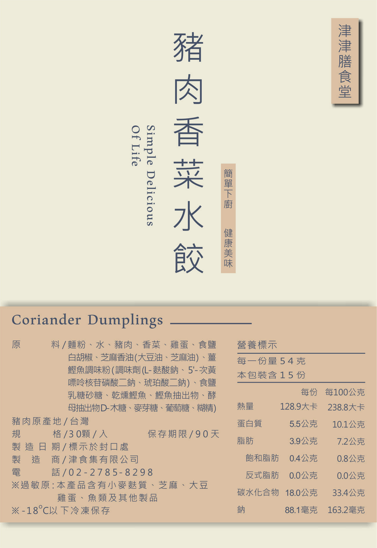 手工豬肉香菜水餃(期間限定)(每包30顆入)