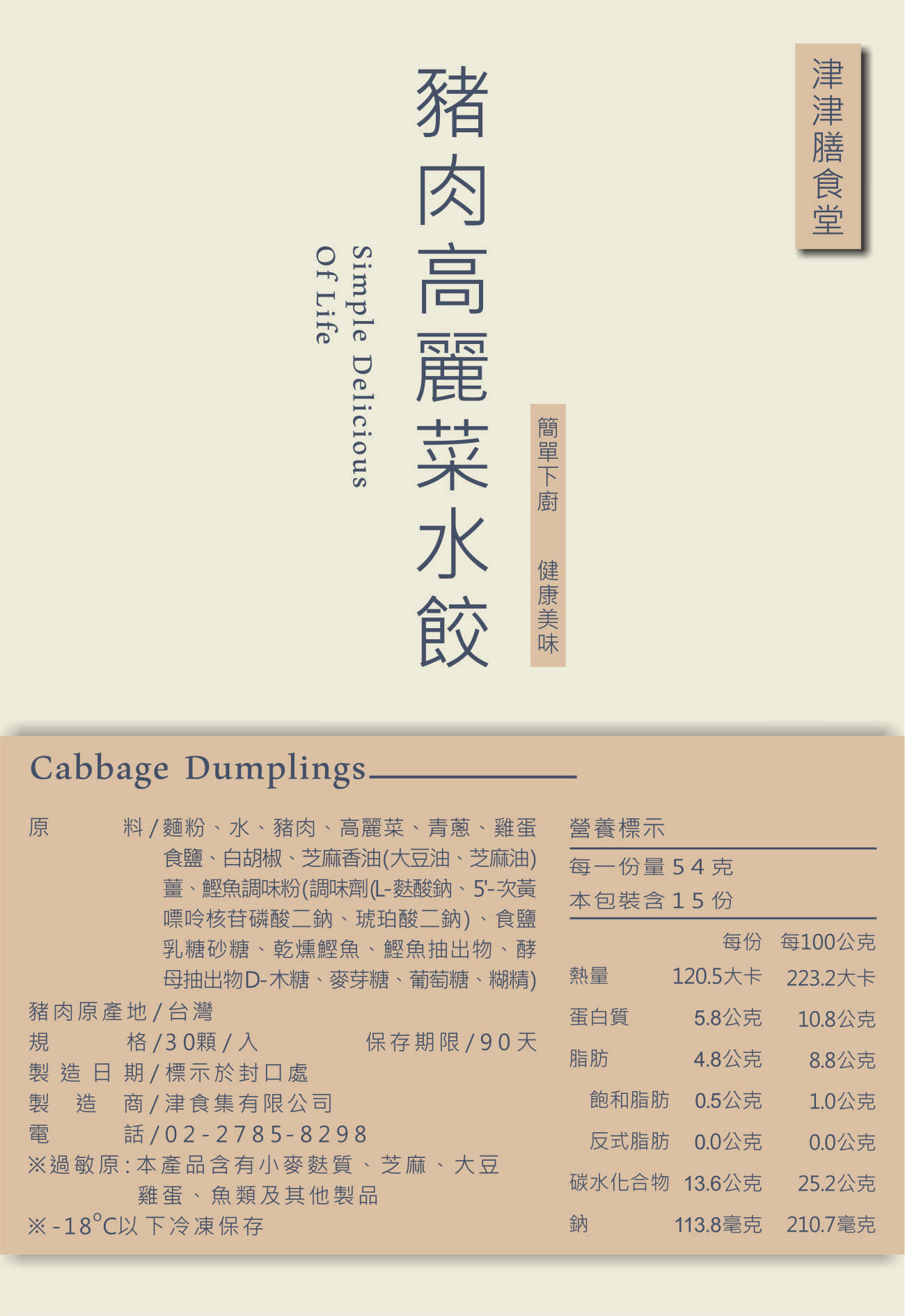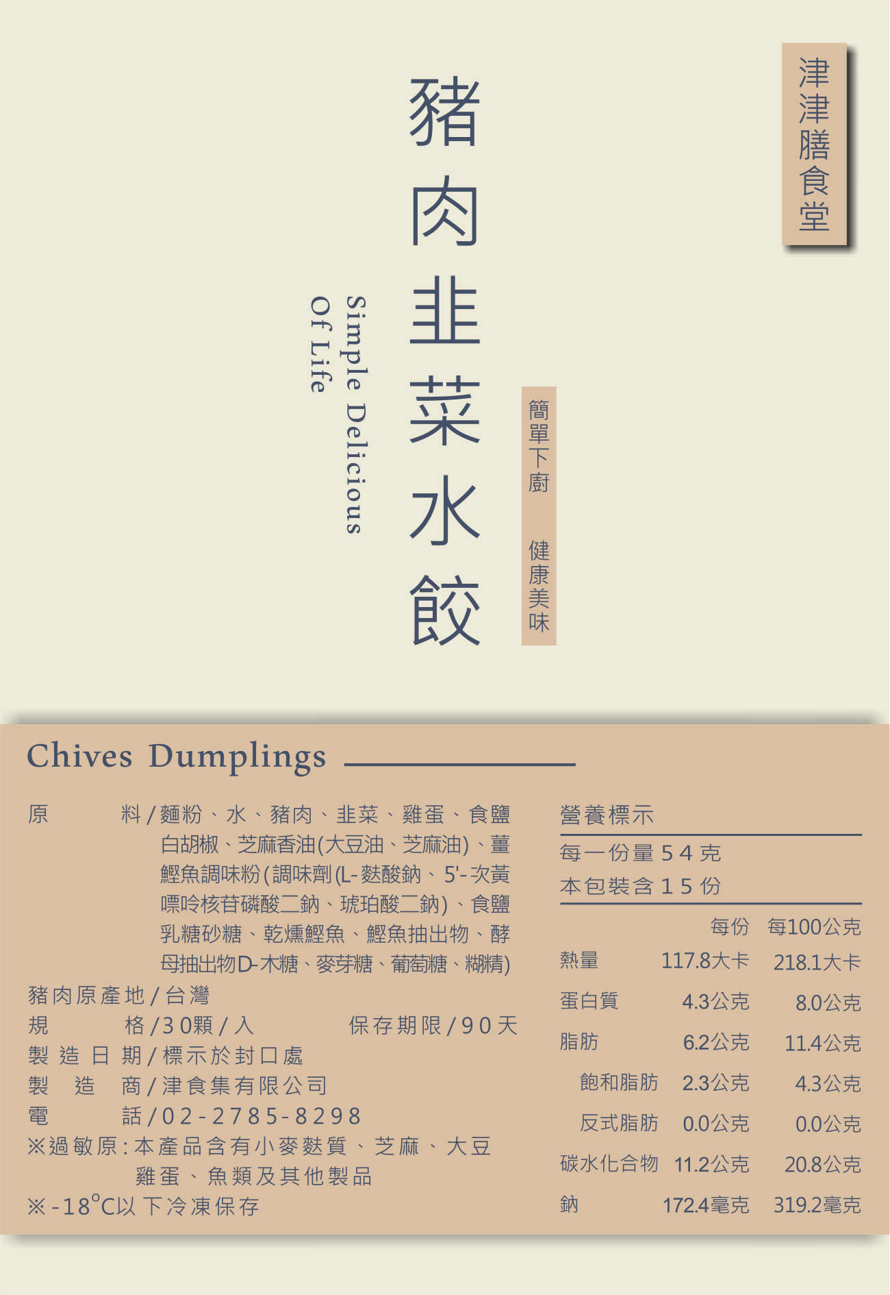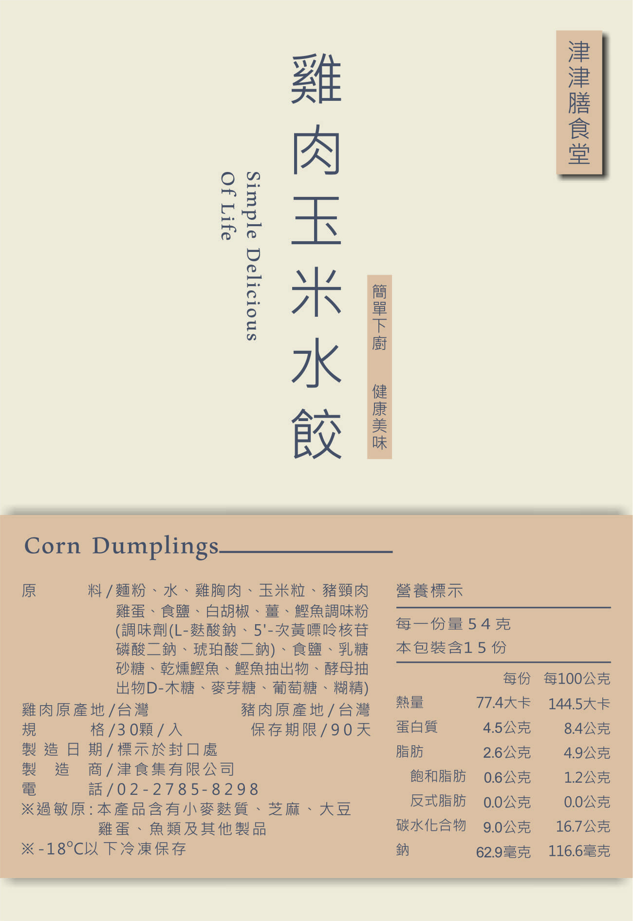 此組包含:1包 高麗菜水餃、1包 豬肉韭菜水餃、1包 雞肉塔香水餃、1包 雞肉玉米水餃